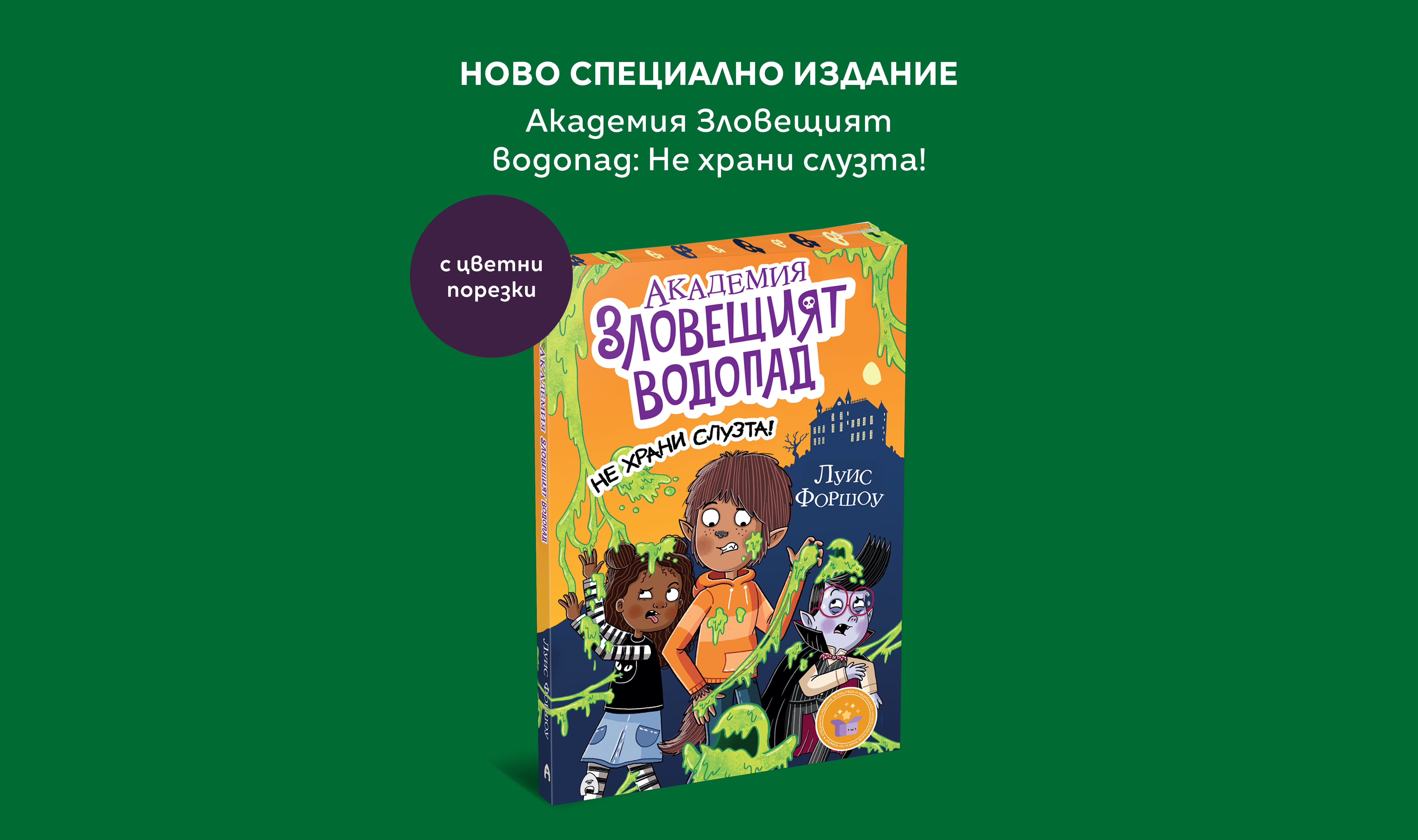 Днес ви споделяме първата ни самостоятелна книжка, която вече живее в нашия нов онлайн магазин — Академия „Зловещият водопад“ книга 2: Не храни слузта!